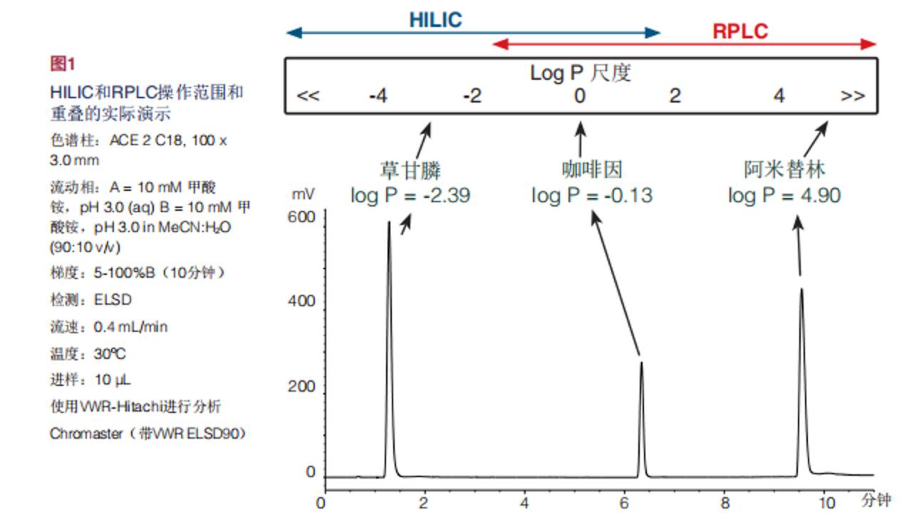 HILIC為親水大極性分析(LogP為負(fù)值)物提供了 RPLC的替代選擇,無需使用離子對試劑即可實(shí)現(xiàn)保留分離。