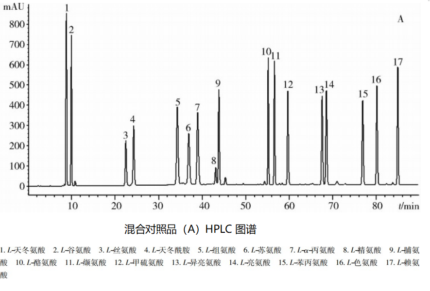 注釋:本應(yīng)用摘自 Journal of Chinese Medicinal Materials DOI:10.13863/j. issn1001-4454.2019.06.025 《 PITC 柱前衍生 HPLC 測定烏梅 17 種氨基酸的含量》