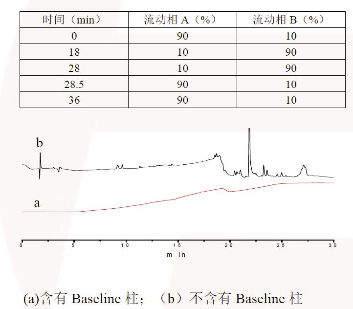 3. 減少基線漂移:在梯度洗脫條件下,基線可能會隨時間發生單方向的緩慢變化,這被稱為基線漂移。基線穩定色譜柱能夠維持基線的穩定性,防止這種漂移的發生。
