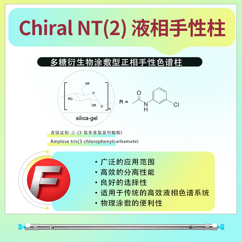 Chiral NT(2)液相手性色譜柱的核心在于其涂敷型固定相,該固定相由直鏈淀粉-三-(3-氯苯基氨基甲酸酯)制成,這種材料能夠高效地對映異構體進行分離。該色譜柱設計用于正相液相色譜系統(tǒng),為手性化合物的分離提供了有力支持。