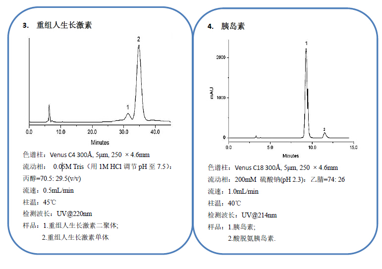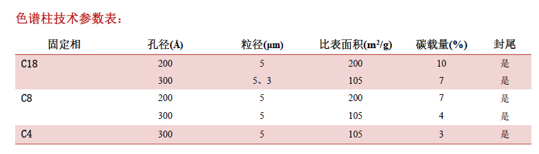 其在純水溶液中不會(huì)崩解。提供200 ?和300 ?兩種大孔徑規(guī)格,結(jié)合多種固定相選擇(C18、