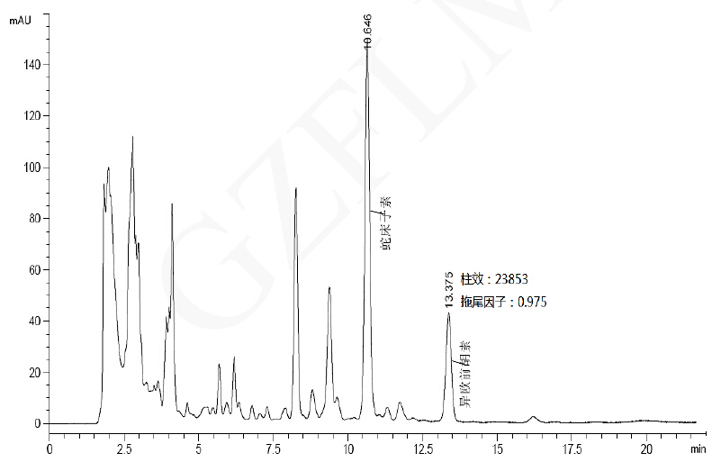 注:藥典規(guī)定理論板數(shù)按異歐前胡素峰計(jì)算應(yīng)不低于 20000.