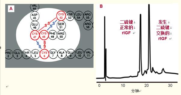 天然類胰島素生長因子(IGF)的Cys52和Cys47以及Cys48和Cys6之間都有二硫鍵(圖43A紅色部分所示)。